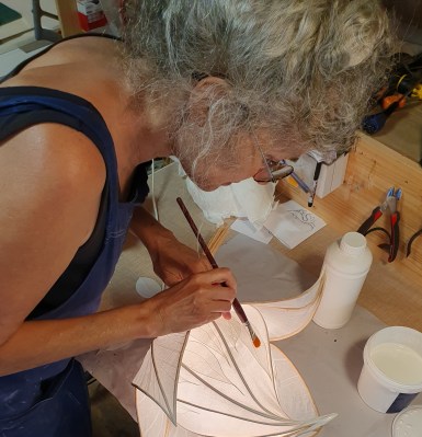 En 2016, elle découvre la création et fabrication de sculptures / lanternes, animaux géants en osier et papier pour le spectacle de rue. A la suite de cette riche expérience, elle crée une série de lampes d’intérieur et autres objets de décoration d’osier et de papier. Parallèlement, elle développe la création de sculptures et masques lumineux destinés au théâtre ou spectacle de rue. Elle donne régulièrement des ateliers de fabrication de lanternes florales suivis de déambulations nocturnes.