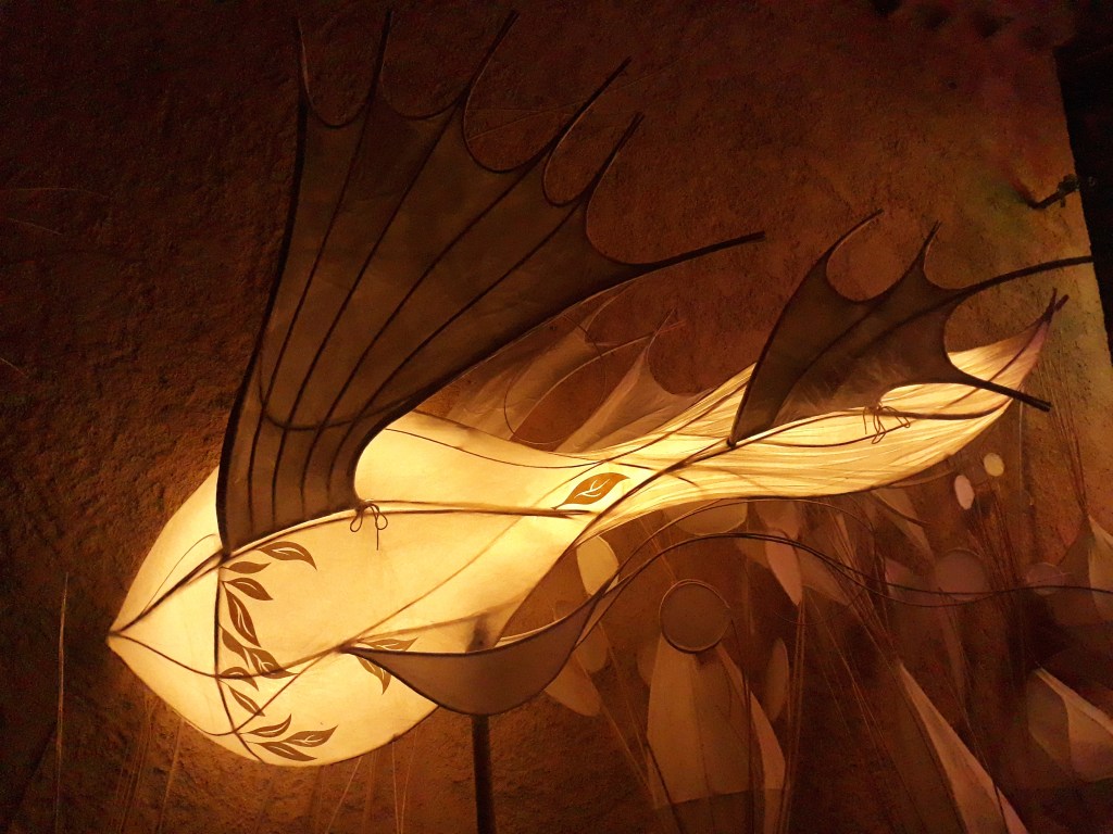 Les déambulations nocturnes sont la plupart du temps l’aboutissement d’un ou de plusieurs ateliers de création de lanternes. Chaque stagiaire participe à la parade avec sa propre création. Mes lanternes, oiseaux, poissons volants, étoile et autres fleurs sont aussi de la fête. Du nombre de jours d’atelier dépendra le nombre de lanternes. Je propose aussi des parades non précédées d’un atelier. Une douzaine de lanternes animaux ou fleurs sont alors présentes.